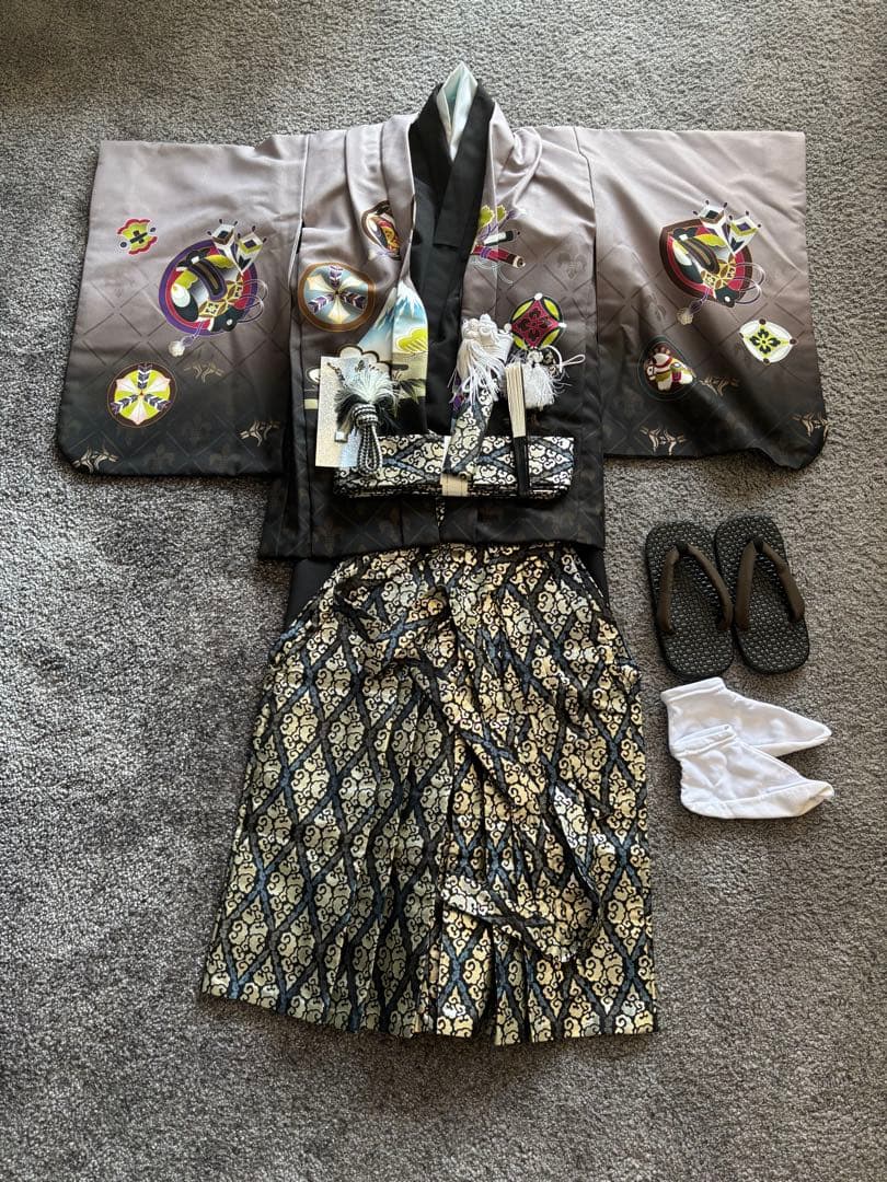 こちらは専用になります着物と襦袢のみですアンティークレトロ感漂う素敵なセットです5歳から小さ目の7歳の七五三 などにいかがでしょうか(内容)着物 作り帯 袖無し襦袢(半襟付き帯揚げ 帯締め バッグ 草履20-21cm☆髪飾り、足袋は付いていません(着物)アンティーク表は紋錦紗縮緬の絹素材になります紫の地にアンティークの素敵な模様が色鮮やかに描かれたとても可愛い着物です☆身丈90cm+22cm腰揚げ22cm袖丈60cm裄47cm+6cm 肩揚げ6 cm腰揚げ、肩揚げありますのでサイズが合えばそのまま着て頂けます☆所々写真に写らないくらいのシミありますが、アンティークにしては良い状態で、着付けで目立つシミなど無いようです(帯)アンティークの子供用丸帯を仕立て直した二部式のだらり帯です。赤色に金の模様がアンティークの着物にピッタリの帯です胴を巻いてリボンはワイヤーが付いていますので差し込んで頂ければ簡単に付けて頂けます。仮縫いのため仕上げに少しかかりますアンティーク帯ですのでシワや薄シミあります筥迫、草履、バッグはセット物で、美品です。アンティーク物はシミや汚れ、小穴等あります見落としなどもありますので、ご理解の程よろしくお願い致します☆